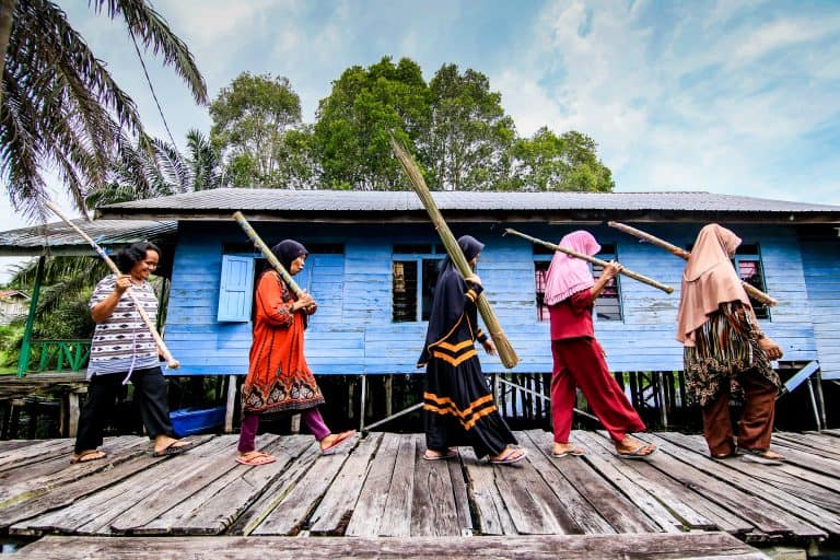 The first of our two youth clubs, Anak Sebangau (‘children of Sebangau’), was established in 2015, marking a shift from ad-hoc education sessions towards a more structured programme of action. Anak Sebangau was created for children 8-12 years old living at the northern edge of Sebangau National Park, some of whom aren’t able to attend school. In this relaxed, non-academic setting, we draw on the children’s Dayak cultural heritage to deliver a range of education activities, from traditional dancing to seedling cultivation in one of our supported community nurseries.