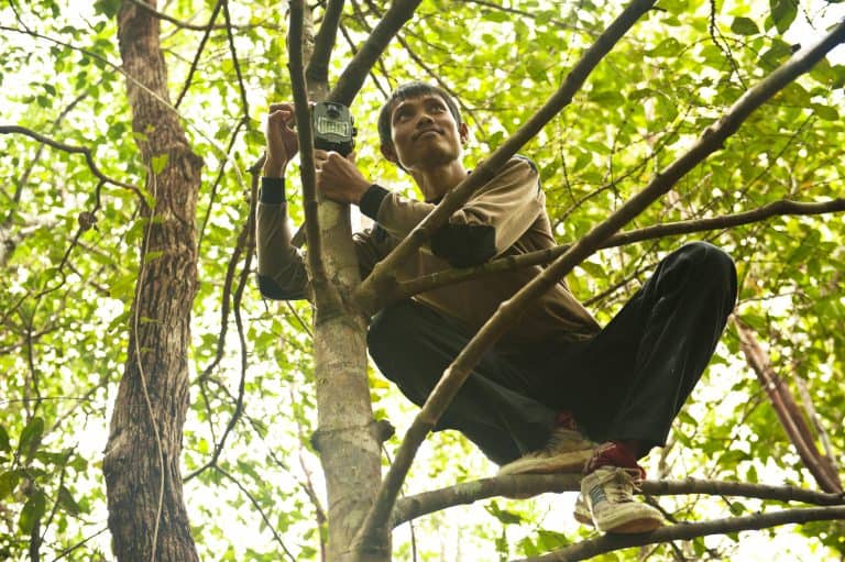 We use advanced conservation technology and analysis software to help shed light on the behaviour, distribution and population dynamics of Borneo’s gibbons. Camera traps can be installed in trees to reveal new insights into gibbon behaviour at close range, whilst bioacoustic methods allow us to estimate gibbon population density and analyse their calls via sound analysis.