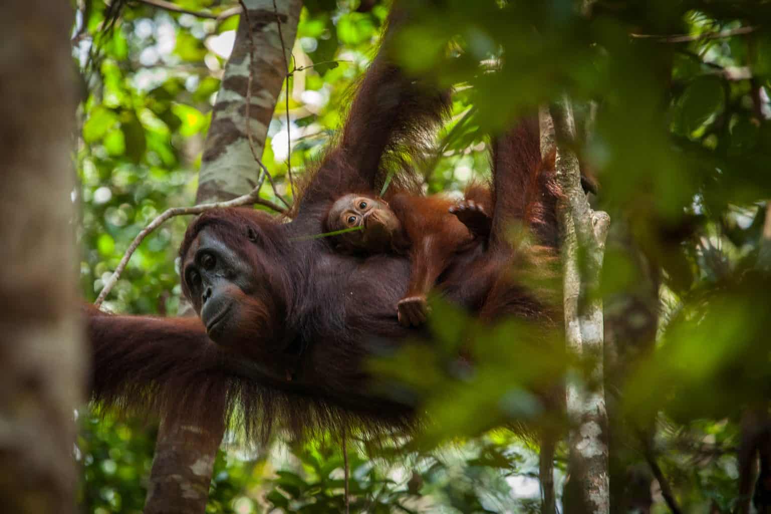 Orangutans, together with chimpanzees, bonobos and gorillas, are our closest animal relatives: they forge strong familial bonds, have sophisticated systems of communication, and are even noted for using tools. Orangutans make their homes across a range of habitats, including peat-swamp and lowland kerangas (heath) forest. Conserving orangutan habitat also benefits the other species living alongside them, from rare crocodilians to the elusive clouded leopard.
