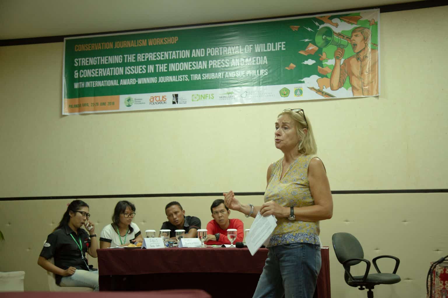 The workshop was led by two award-winning journalists, Sue Phillips (former Founding Director of Al Jazeera) and Tira Shubart (Freelance International Journalist). The first two days were allocated for NGOs, universities and the government, and was then followed by one full day conservation journalism training for journalists from prominent print media, television, radio and film productions. Sue and Tira shared techniques and key strategies to bring the complex messages of conservation to a more down-to-earth approach in order to be well-accepted by national and international audiences.