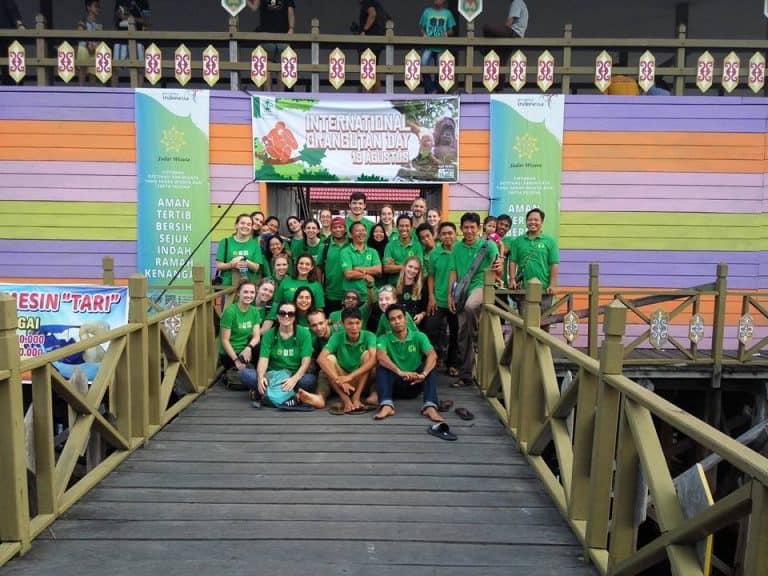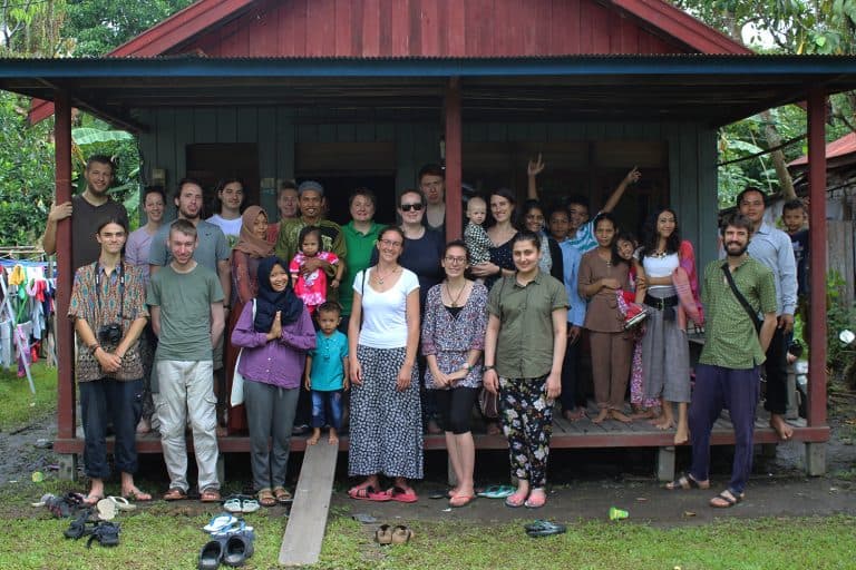 It’s 6:30am and the rustle of sleepy people and groans next to me confirms it’s time to get a move on to make sure I’m ready to pounce on breakfast before the good stuff disappears. Our beds, which look more like stretchers, are made from rice bags and are surprisingly comfy, I am yet to wake up uncomfortable or aching! First stop is the toilet which, before putting contact lenses in, is an uneasy walk along the raised wooden walk ways to a hut with squat toilets and buckets of water. Like all the ‘pondoks’ (tent rooms) it is made from blue tarp, an unusual and startling colour amongst endless green and browns. Breakfast is announced and we rush to fill our stomachs with the staple; rice, noodles, green beans and prawn crackers. While our lecturer has his 4th cup of coffee I finish off getting ready, packing a lunch box with breakfast leftovers and collecting the favourite snack, peanuts. They take the longest to eat.