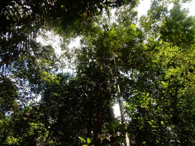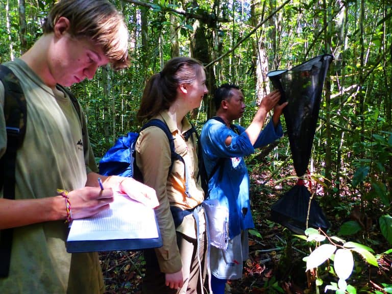 It’s 6:30am and the rustle of sleepy people and groans next to me confirms it’s time to get a move on to make sure I’m ready to pounce on breakfast before the good stuff disappears. Our beds, which look more like stretchers, are made from rice bags and are surprisingly comfy, I am yet to wake up uncomfortable or aching! First stop is the toilet which, before putting contact lenses in, is an uneasy walk along the raised wooden walk ways to a hut with squat toilets and buckets of water. Like all the ‘pondoks’ (tent rooms) it is made from blue tarp, an unusual and startling colour amongst endless green and browns. Breakfast is announced and we rush to fill our stomachs with the staple; rice, noodles, green beans and prawn crackers. While our lecturer has his 4th cup of coffee I finish off getting ready, packing a lunch box with breakfast leftovers and collecting the favourite snack, peanuts. They take the longest to eat.