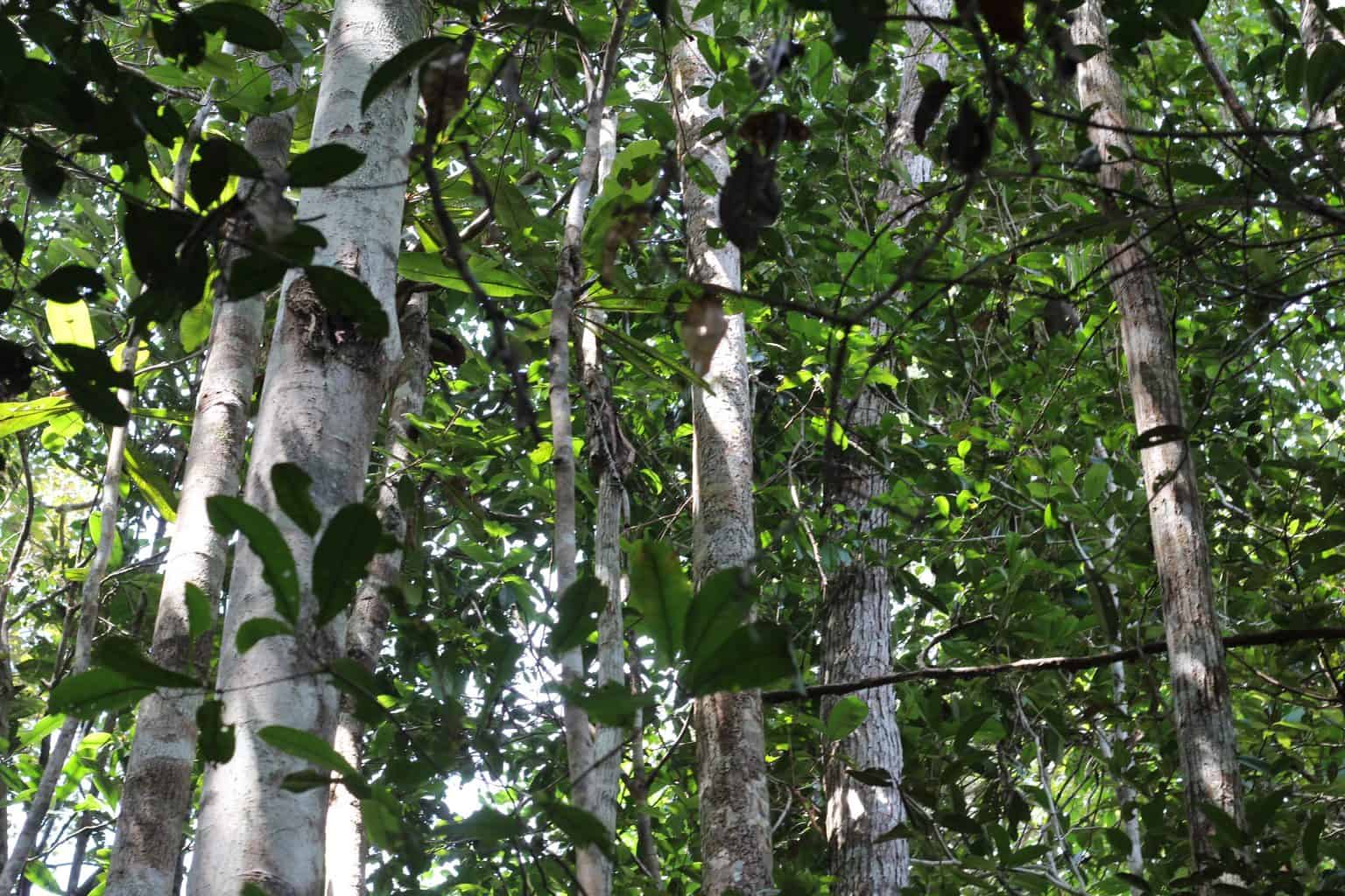 Today myself and two other Exeter students are with our lecturer Frank on a hunt to catch fish in the low pole peat swamp forest, which becomes known as the swamp of sadness. Other exeter students and UMP local students are in various groups carrying out plots (intensive tree and habitat data), butterfly/ dragonfly/ orangutan nest surveys, camera trapping, acoustics or gibbon triangulation. We bid farewell to our peers and head off east to transect N6, 2km of low pole forest, the sample site of our survey today. Frank’s long legs makes it look easy as us shorties sink thigh deep into the brown swampy water, frequently slipping and falling over hidden stumps and roots.