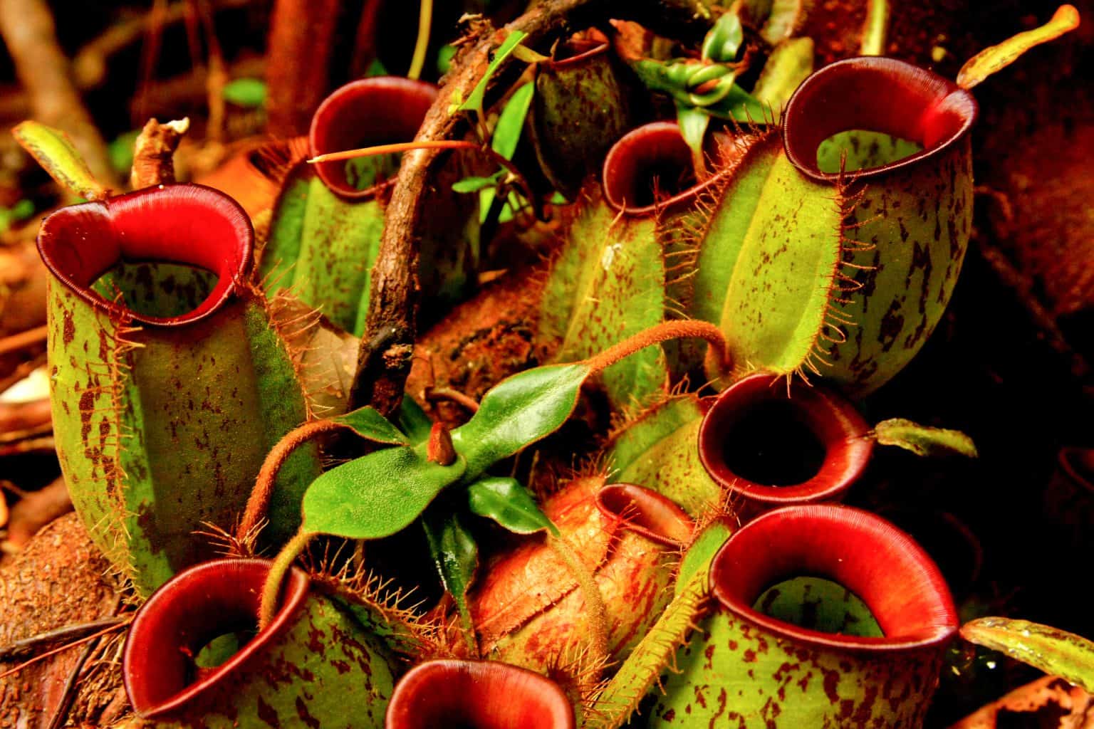 Like other carnivorous plants, pitcher plants grow in poor quality soil, so have adapted to find their nutrients elsewhere. These predatory plants have a built-in booby trap (the ‘pitcher’) in which to drown their unwitting prey, lured by the plant’s bright colours and sweet aroma. Although insects make up a significant portion of their diet, some species have been known to digest snails, frogs and even rats!