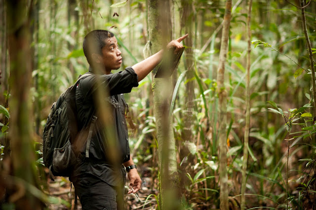 | Supian continuing the red langur research in the Sabangau Forest. Photo by Chris Owen/OuTrop |