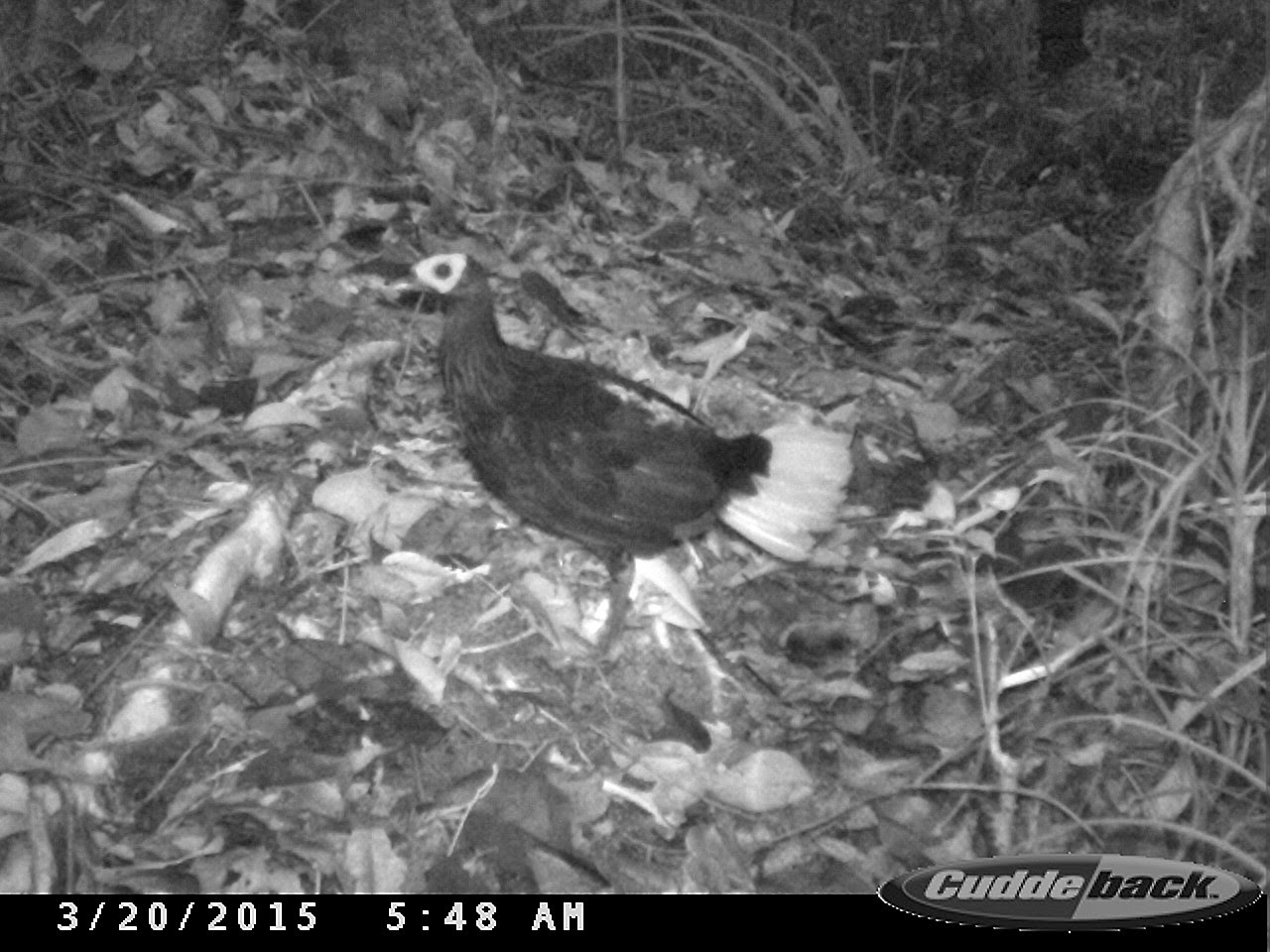 April is still very wet in the forest and the animals are still avoiding the water. There are some dry areas where we captured a photo of a crestless fireback as well as a leopard cat.