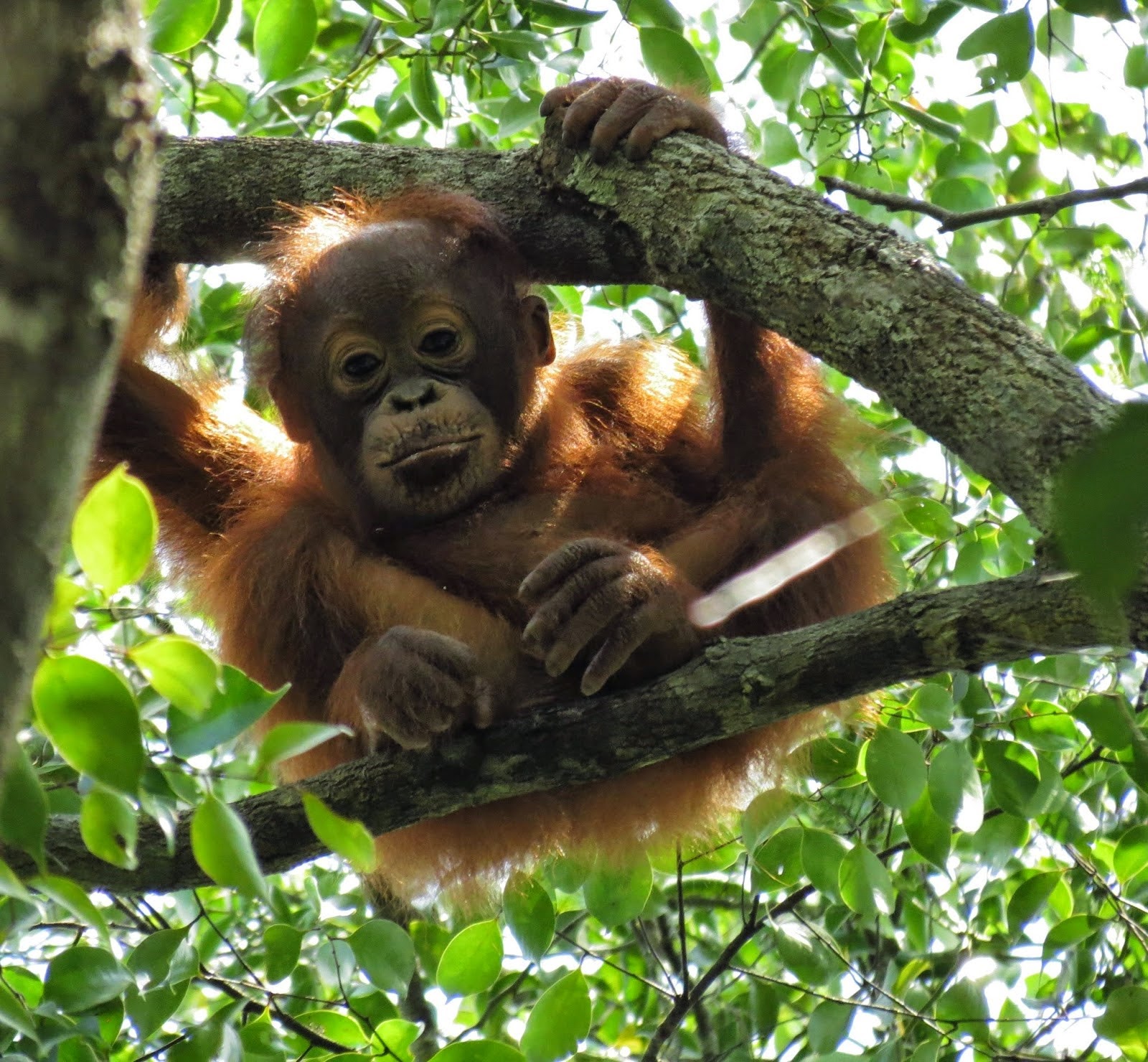 Like all orangutans, Fio spent much of his first year of life clinging to his mother; relying on her for travel. As months passed by he began to explore more and more, initially clambering in the branches close by to Feb, then slowly gaining the ability and confidence to travel further from his mother.